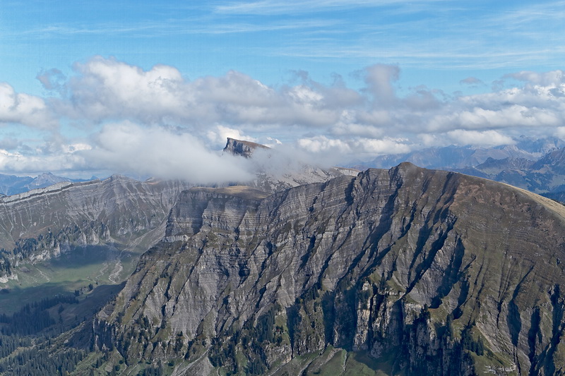 Sanft ansteigende, grasbewachsene Südhänge und steil abfallende Nordwände sind charakteristisch für die Berge der Bregenzerwaldregion. Am Gipfelgrat wird deutlich, wie das Gestein arbeitet und manches Loch ist tiefer, als man denkt.