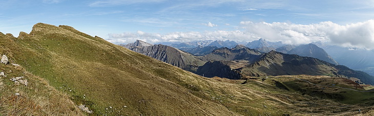 Hoher Ifen and Widderstein are the eye-catchers of the panorama in eastern direction. The rest of the panorama will be supplied on our next visit, when the fog has cleared away.