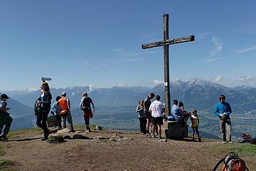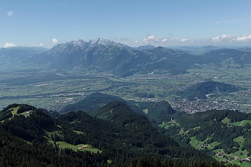 After a long summit rest we descended the same route down to Ebnit which is located below the prominent rock walls left of the center.