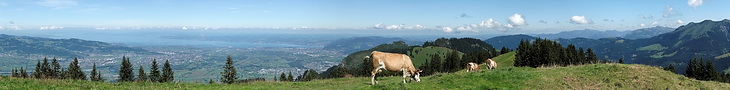 Das Panorama am Gipfelgrat der Hohen Kuge ist faszinierend und abwechslungsreich: von der Segelbooten auf dem Bodensee bis zu der Eisgipfeln der Tödi Gruppe.