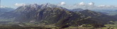 Über den Nordgrat ging wieder zurück nach Ebnit, das unterhalb der markanten Felszähne links der Bildmitte liegt.