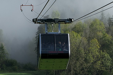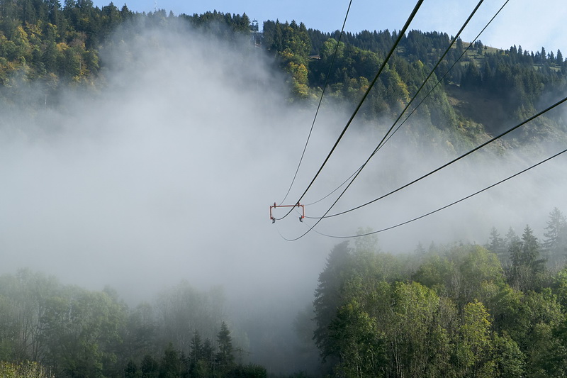 Glück gehabt: die Regenwolken der Nacht hatten sich noch rechtzeitig verzogen und es wurde insgesamt ein idealer Wandertag. Mit der 2010 erneuerten Seilbahn ging es zunächst hinauf zur Station 'Sonderdach'.