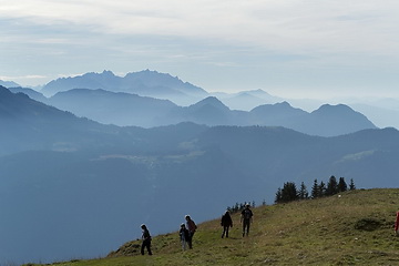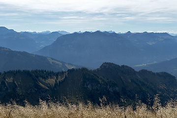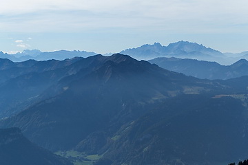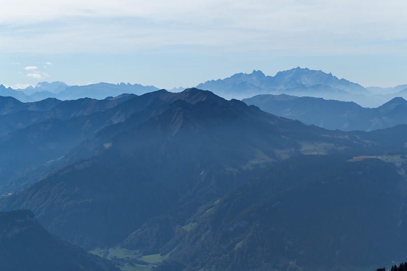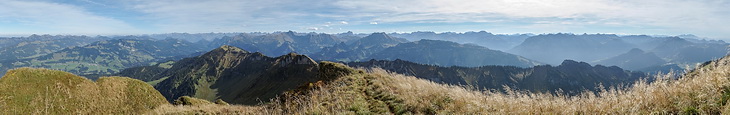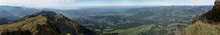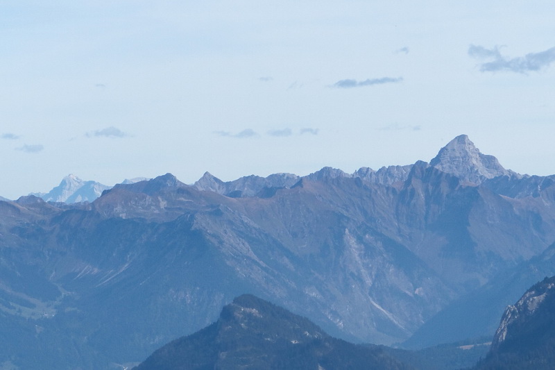 Much to our surprise we didn't meet many people on the summit so we could enjoy the panorama in complete silence: Zugspitze and Hochvogel (image 2) as well as Kanisfluh with the Rätikon range behind (image 3) up to the Swiss mountains in western direction (image 4).