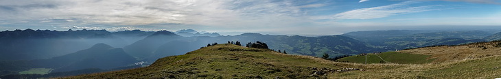 Das komplette Gipfelpanorama reicht von den Allgäuer- und Lechtaler Alpen über das Rätikon bis zu den Ostschweizer Bergen.