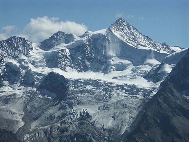 Vom Weisshorn bis zum Grand Combin (leider in Wolken): Ein wirklich eindrucksvoller Überblick über die Walliser Eisgipfel.