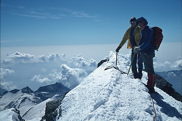 Viel Platz ist nicht am Gipfelgrat aber das Strahlhorn ist jeden Aufstiegsmeter wert.