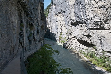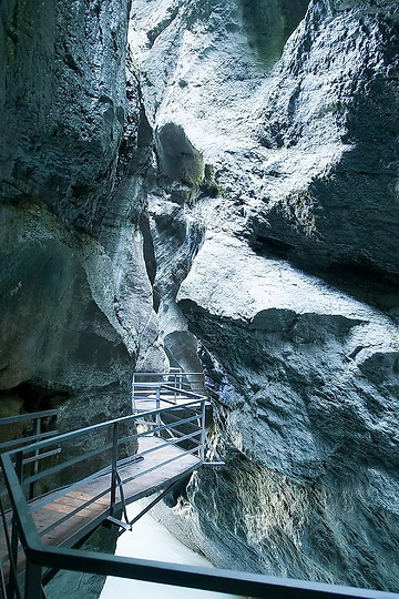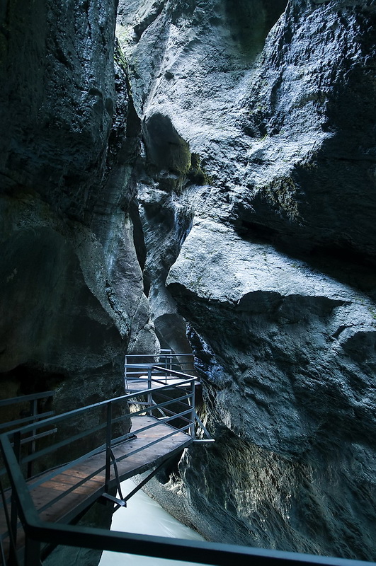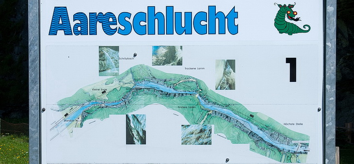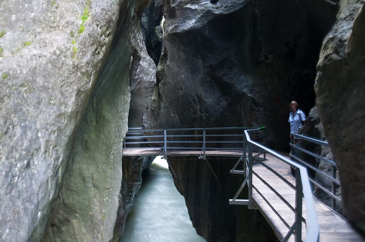 The Aare Canyon is 1.400 m long and was formed by the melting water of the Aare Glacier which cut their way through a limestone barrier during the last ice-age. In 1888 the Canyon was made accessible to the public and shows some spectacular views especially at a part called 'Kleine Enge' where the rock walls are just about one meter apart.