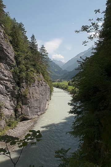 Nach der Grossen Enge wird die Schlucht wieder breiter bis schliesslich der obere Eingang der 1400 m langen Aareschlucht erreicht ist.