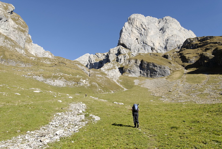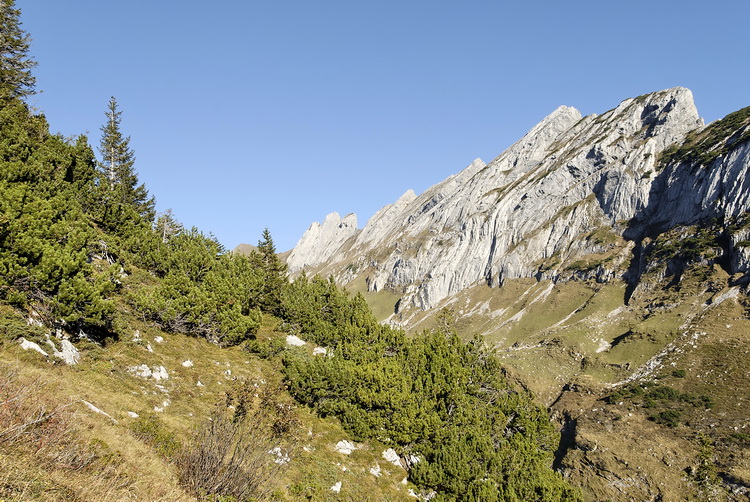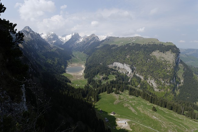 Passing the Altmann west face - a well known climbing area - we descend back into the Tesel Valley where we take a final look back to Gaetterifirst, also well known among rock climbers.