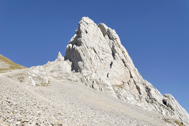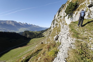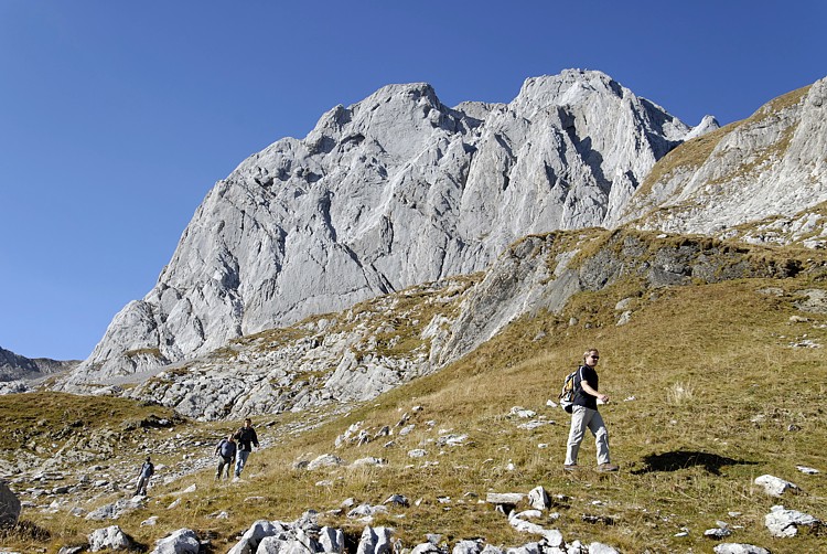 A short rock passage between the Tesel Valley and Wildhauser Schafboden (1678 m). From Wildhauser Schafboden the path continues passing the rocks of Moor (2.344 m) up to Jöchli which is situated in the gap left of the center.