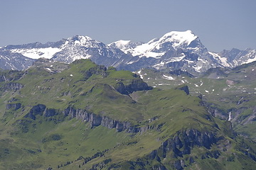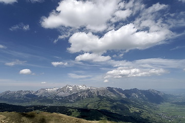 Summit view from Gulmen across the Rhine Valley to the Alvier massif and finally to Naafkopf and Falknis.