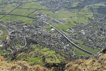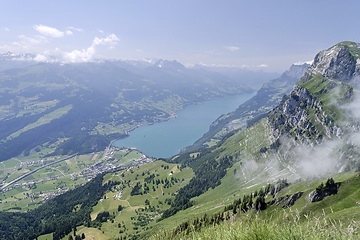 Tiefblick auf Walenstadt und Walensee, der nach der Eiszeit den Bodensee mit dem Zürichsee verband.
