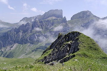 Südwestlich des Alpsteinmassivs befindet sich der Speer, der auf dem Normalweg von Amden aus bestiegen wird. Von Westen erreicht man den mit Drahtseilen versicherten Klettersteig über den Nordwestgrat (wegen der Rasenabsätze nur bei trockenem Wetter zu empfehlen). Der Speer ist der höchste Flyschgipfel (s. Bild unten) der Alpen, ein kleiner Hügel verglichen mit dem berühmtesten und höchsten dieser Spezies, dem Kailas in Tibet.