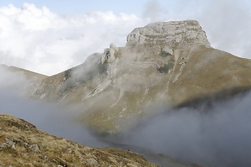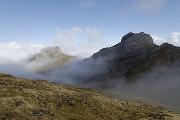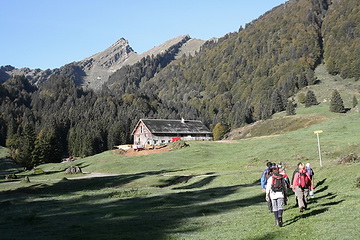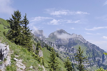 Formed like a spearhead the summit of Speer (Speer means spear) is easy to recognize as well as the rocks of Goggeien left of the center. From the Toggenburg side Speer can be climbed in a days' hike.