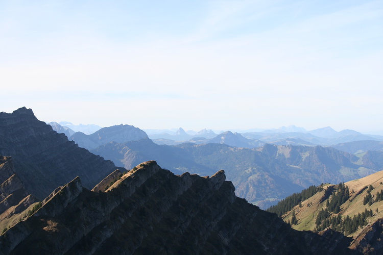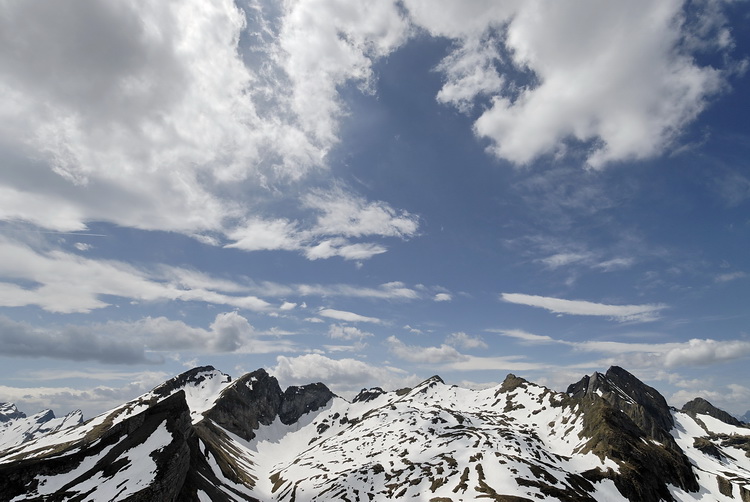 Gipfelblick zu Fulfirst, Rosswies, Sichli und Gamsberg. Und natürlich ein letzter Blick nach Norden zum Alpstein.