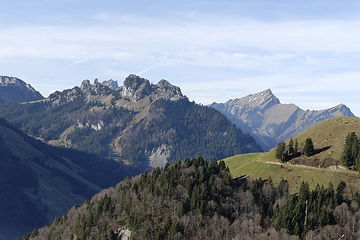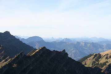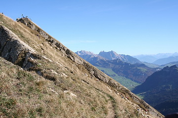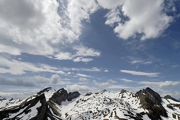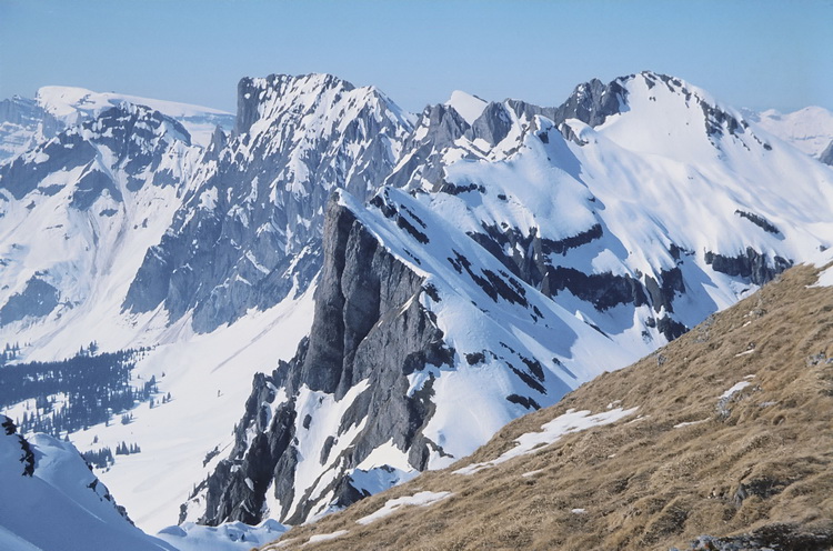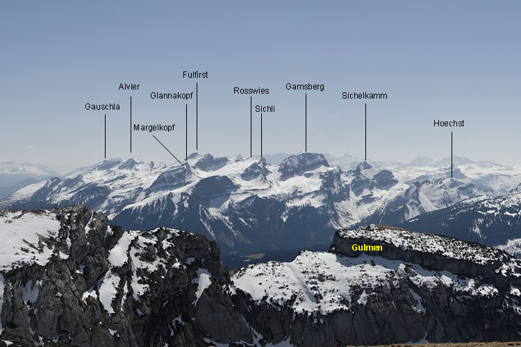 View from the summit of Alvier in north-western direction. From left to right: Chaeserrugg, Gamsberg, the white triangle of Rosswies and finally Fulfirst (both of them are nice ski tours). In summer Alvier is a nice hiking summit and mostly climbed from the Malbun restaurant.