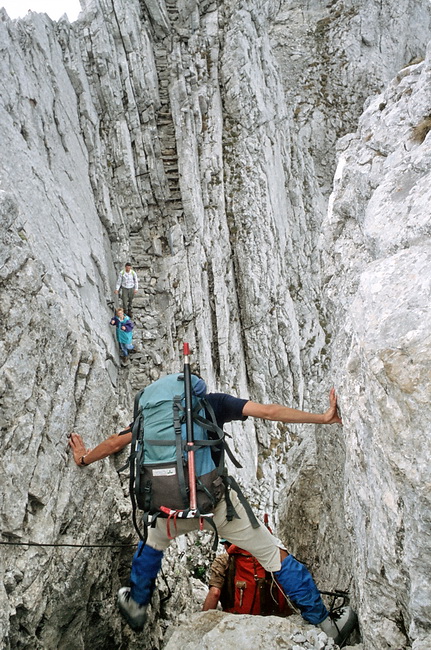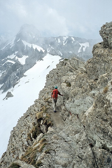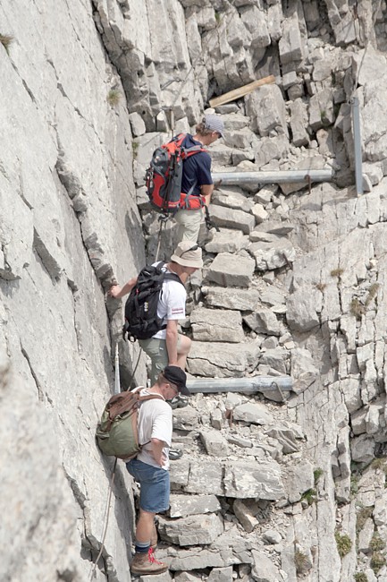 The path is well belayed but very exposed in some parts. Sufficient alpine experience, caution and a good head for heights are absolutely necessary for this part of the trail.