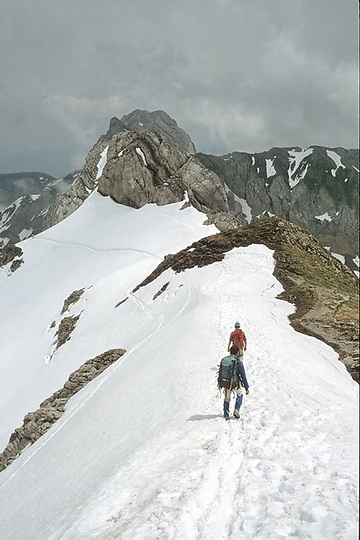 Lisengrat from the south taken at the summit of Joechli. If you are planning to do the ridge in early summer you should first of all try to get some information about the snow conditions.