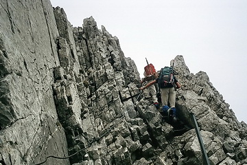 Der Weg ist zwar gut versichert, aber stellenweise sehr ausgesetzt. Entsprechende Erfahrung, Trittsicherheit und Schwindelfreiheit sind hier Voraussetzung.