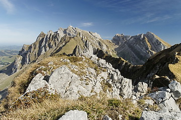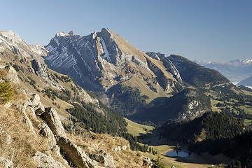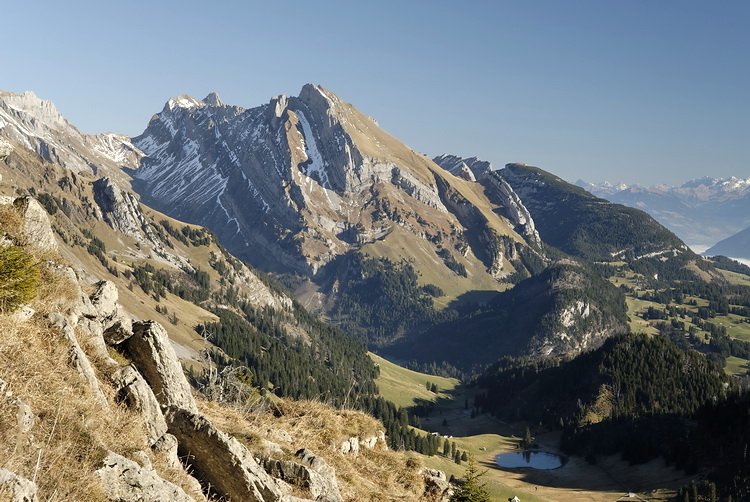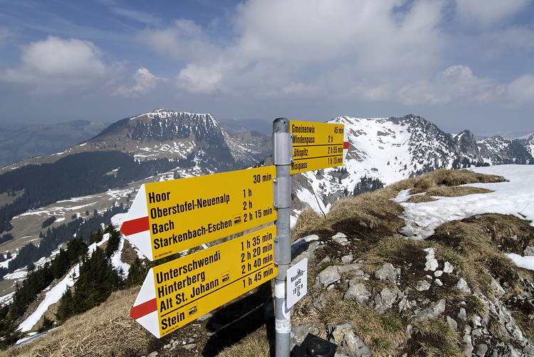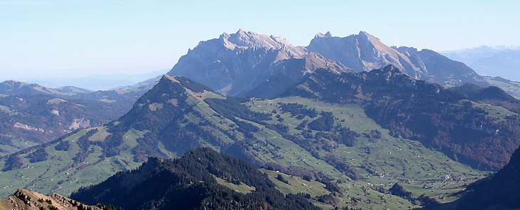 At first glance the rocks of Stoellen do not seem to be very attractive for hikers since even the path is sometimes missing or leads up grassy slopes. The view on the summit however is excellent. The panorama covers the Alps of Glarus up to Lake Zurich, up to the well known profile of the main part of the Alpstein massif with Saentis, Altmann and Wildhauser Schafberg.