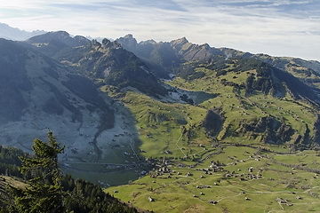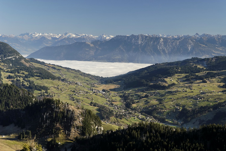 Arrived on the south-ridge of Neuenalpspitz we are looking down to the village of Stein in the Toggenburg area.