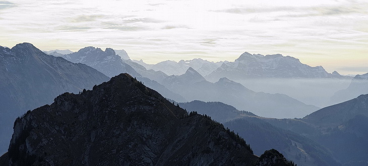 Spätherbstliches Panorama der Glarner Alpen mit Bifertenstock, Tödi und Glärnisch.