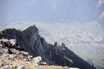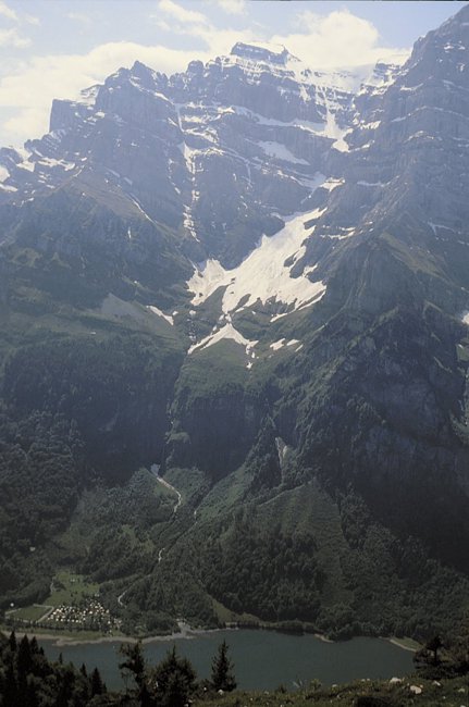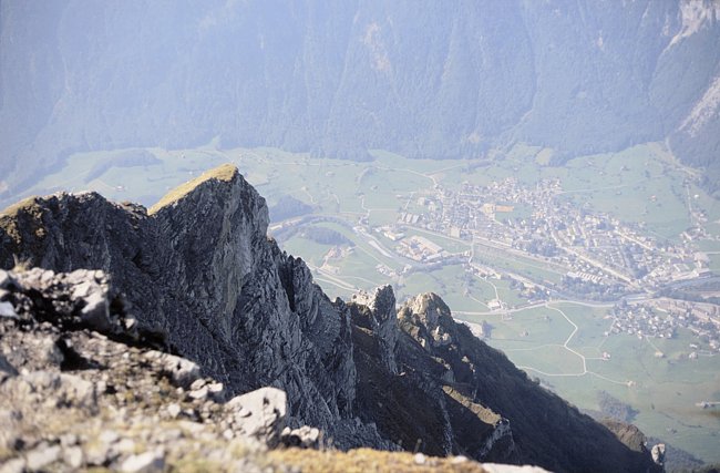 ...and down to the Linth Valley. The summit rocks of Glärnisch and its second highest peak Vrenelisgärtli are still 600 m above.