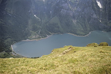 The 4 hours ascent to the summit of Vorderglärnisch starts at a place called 'Hinter Saggberg' (1050 m) above the southern banks at the eastern end of Klöntal Lake. The path is sometimes very narrow, some parts are a bit delicate and therefore belayed by wire cables. After passing this part the path becomes steeper and across the slopes of Glärnischplanggen the summit with its spectacular views is reached.