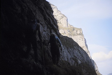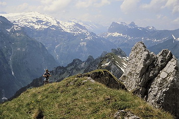 The route to Vorderglärnisch leads long some cable belayed passages, whereas the final ascent of the summit of Dejenstock affords a good sense for orientation and caution at a few unbelayed, exposed parts. This route can not be recommended in wet conditions or if there are still snow fields present.