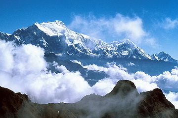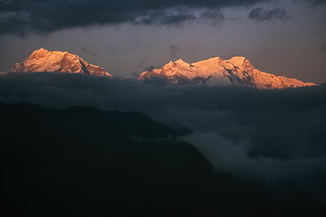 Vantage point Rambrong Peak ( ~ 4400 m): North-eastern view to Himalchuli (7893 m) and Manaslu (8156 m) both about 40 km away.