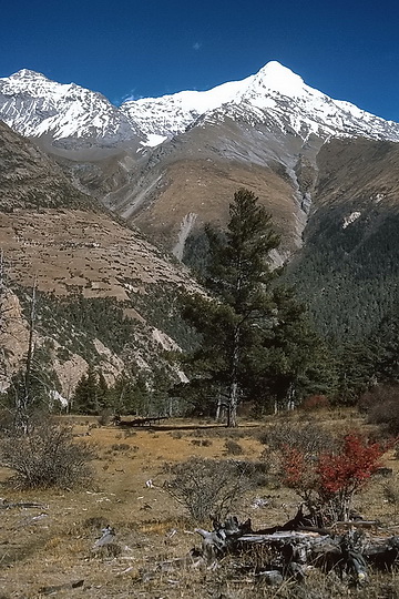 Above Tangting at 3130 m - view to the east face of Machapuchare (6993 m).