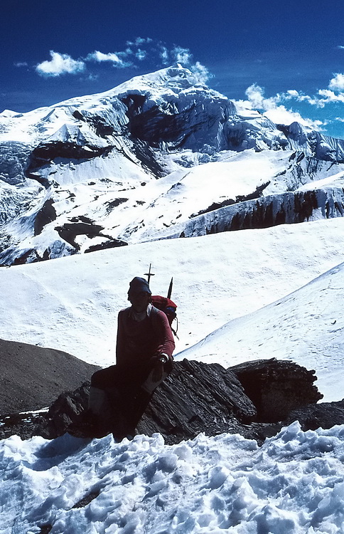 The final ascent looking in southern direction towards  'Point 6032 m' and finally the pass at 5416 m - behind Yakgawa Kang (6481 m).