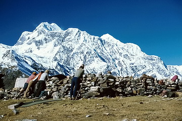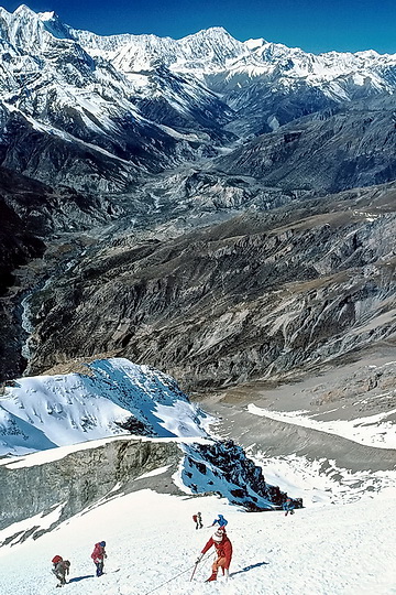 One of the highlights during the Annapurna circle is definitely the ascent of Pisang Peak - a 6000 m summit which is reached via two additional camps. The summit panorama includes to the south the complete north side of the Annapurna range, Tibet in the north as well as the Manaslu Himal to the east.