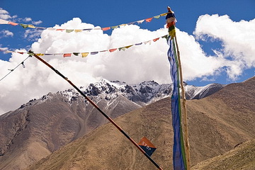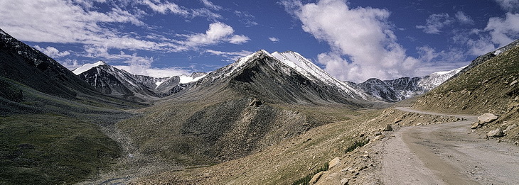 Khardung La is one of the highest traversable pass roads worldwide and was originally built for military purposes. In 1994 it was also opened for tourist traffic and is now connecting Leh with the Shyok- and Nubra valley north of Leh between the Ladakh- and Karakoram range which belong to the Indian part of the Karakoram.