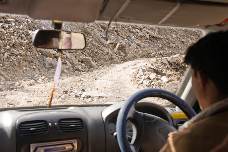 Talfahrt bei dünner Luft hinunter nach North Pulu, der ersten Ortschaft und Ckeckpoint nördlich des Khardung La.