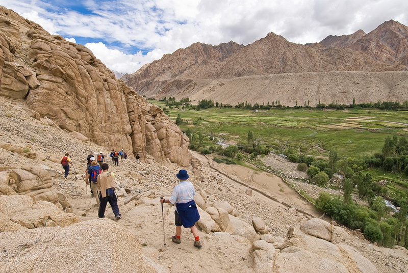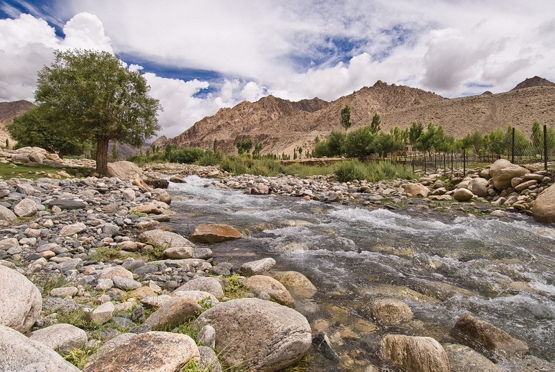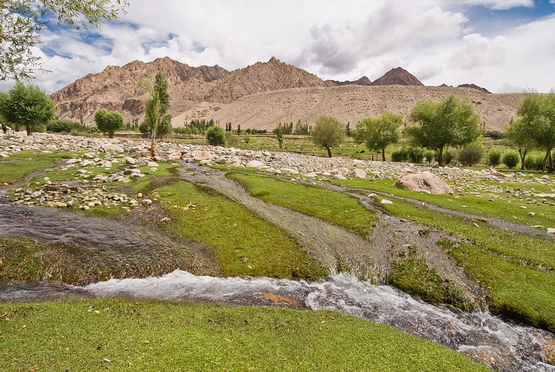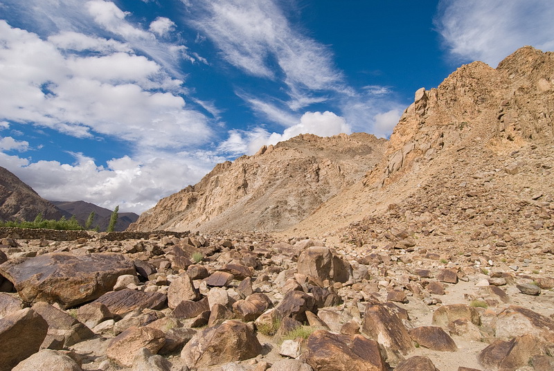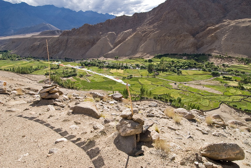 The trail from Likir to Ney is leading through an impressive and desert-like landscape with a great number of photo subjects. The village of Ney is situated in a deeply cut side valley joining the Indus valley at Basgo.