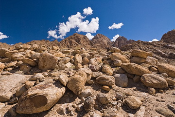 On the final part of this trekking we are again crossing a desert-like landscape with a bizarre rock scenery down to Nimu where we the bus back to Leh is already waiting.