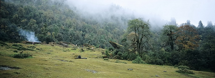 The difference in altitude between Camp 3 and Camp 4 (2050 m) near Barpak is around 1150 meters. It was the first time we could spot Rupina La (left of it Boudha Himal - 6672 m). About 10 km north-east of Barpak we established camp five on a nice alpine meadow (2815 m).