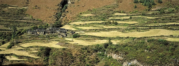 Verglichen mit der nahegelegenen Umrundung des Annapurna Massivs ist es auf der Manaslu Runde noch relativ einsam. Vielleicht liegt dies daran, dass aufgrund der Schneelage nicht immer möglich ist, die Pässe Rupina La und Larkya La zu überschreiten. Auch wir mussten auf den Rupina La verzichten, die Alternative zurück über einen 3000 m hohen Höhenrücken hinunter ins Budhi Gandaki Tal war jedoch mehr als nur eine Notlösung.
