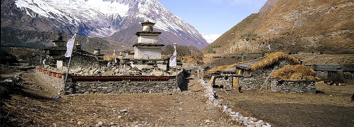 Passing mani walls we carried on to Samdo. Behind us Simnang Himal (6251 m) and Himalchuli (7895 m).