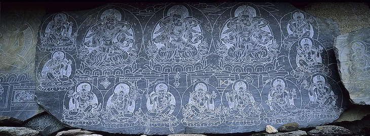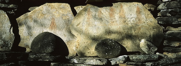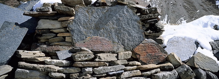 Vorbei an Mani Mauern führte unser Weg nach Samdo. Hinter uns Simnang Himal (6251 m) und der Himalchuli (7895 m).