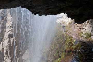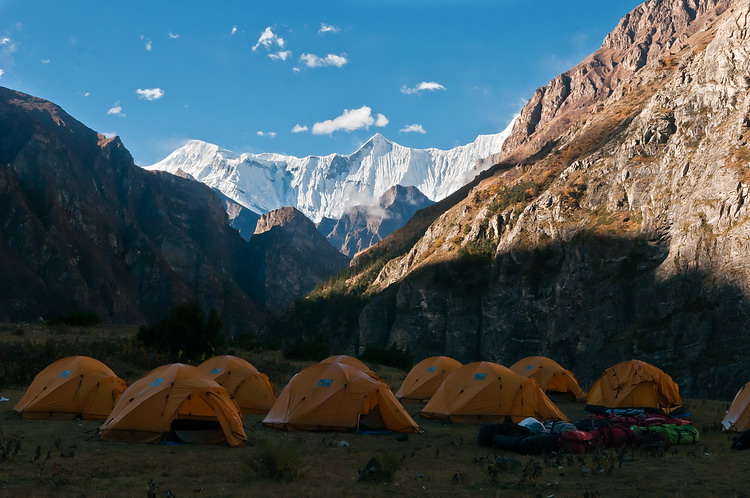 Kurz vor Meta unterquert man einen Wasserfall und erreicht den Lagerplatz (3650 m) mit eindrucksvollem Blick auf den Lamjung Himal (linker Gipfel 6890 m). Ab Meta ist ein weiteres Trekkingpermit notwendig.