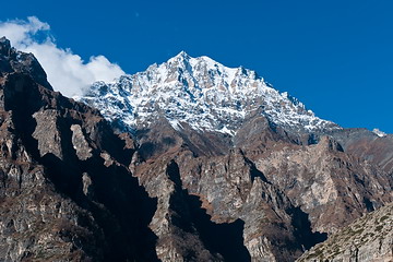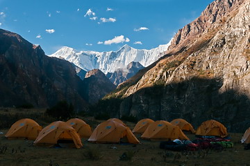 At our camp near Meta at 3650 m we got an impressive view of Lamjung Himal (summit to the left - 6890 m). From here on another we needed a new trekking permit.