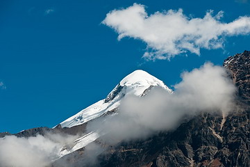 The first picture shows the north face of Jong Ri or Pisang Peak (6.091 m) which is climbed quite often during the Annapurna Trek. The pyramid in picture three is a 6.400 m peak of the Damodar range followed by Kang Guru (6.981 m) in the next picture.