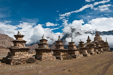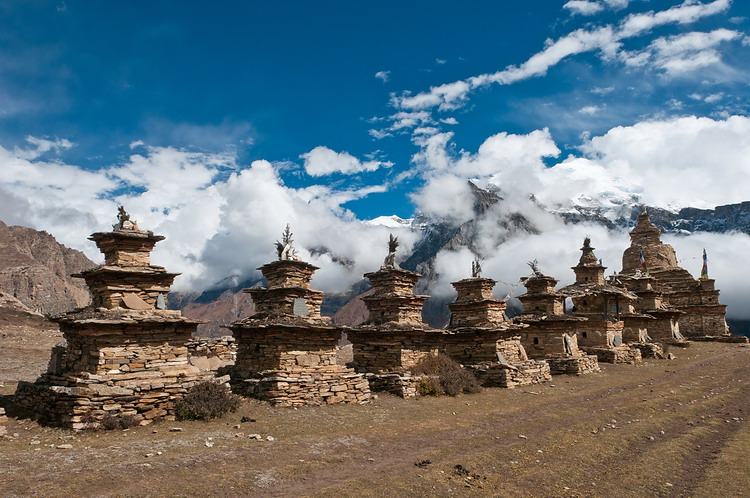 Eine Reihe von Stupas (Chörten) kündigen die Ortschaft Naar (4110 m) an.