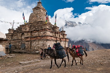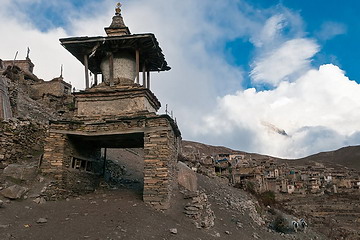 The Gompa (meditation room) of Naar and a Gate Chorten. Chorten or Stupas are symbols of enlightenment.