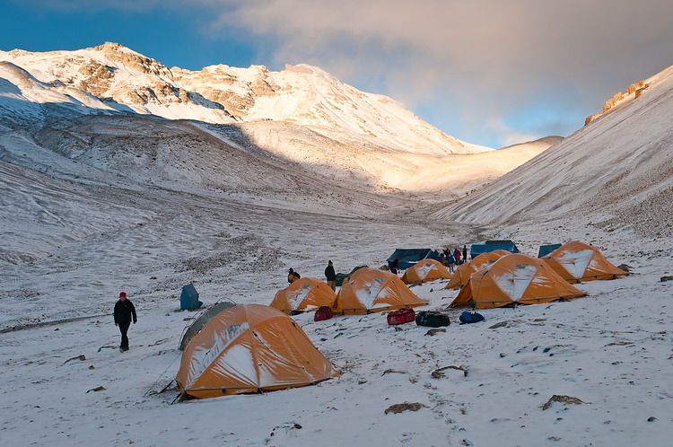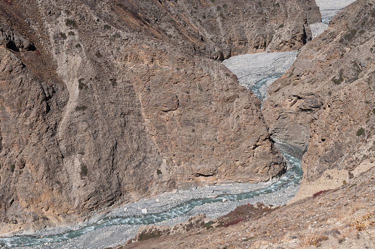 The word La means 'on top' and is describing many passes in Tibet and the Himalaya. The Teri La pass is documented with different altitudes: 5.450 m, 5.560 m or 'just' 5.300 m which still is too high for humans to live for a longer period of time. Via Chandau (4.300 m) in the Lapse Khola valley and Lungre (4.550 m) it took us 4 days to reach the camp at 5.100 m from where we started the final ascent.