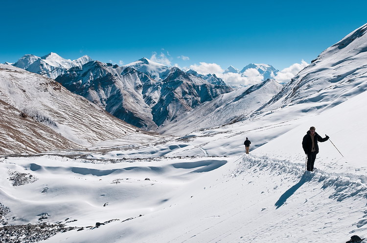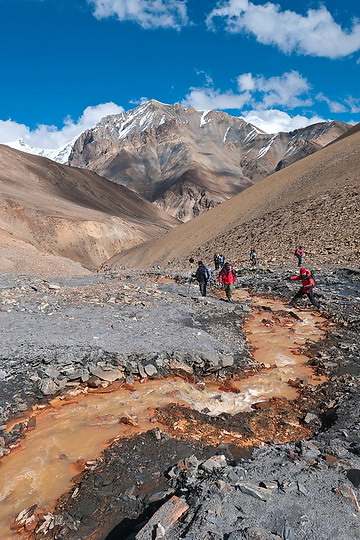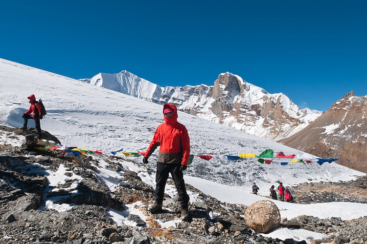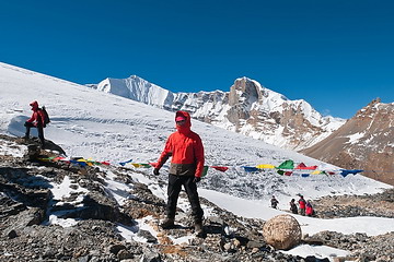La heisst "am höchsten" und bezeichnet viele Passübergänge in Tibet und dem Himalaya. Der Teri La hat verschiedene Höhen: 5450 m, 5560 m oder auch "nur" 5300 m. Jedenfalls führt der Weg auf eine Höhe, in der ein Mensch nicht auf Dauer leben kann. Über Chandau (4300 m) im Lapse Khola Tal und Lungre (4550 m) ereichen wir in 4 Tagen das Hochlager auf 5100 m, von wo aus wir den höchsten Punkt dieser Tour in Angriff nehmen.