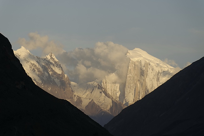 From this point both Ultar peaks are also visible: Bojohagur Duanasir (7318m left) and Ultar Peak (7350m right). With a last view of the main summit of Ultar we are leaving Hunza.