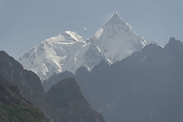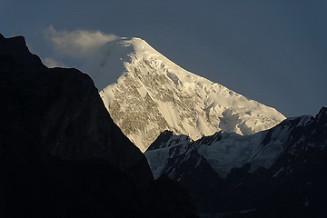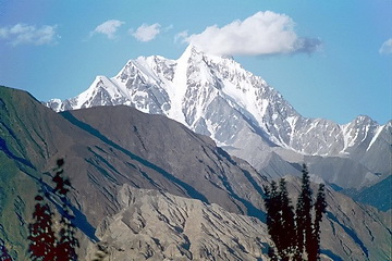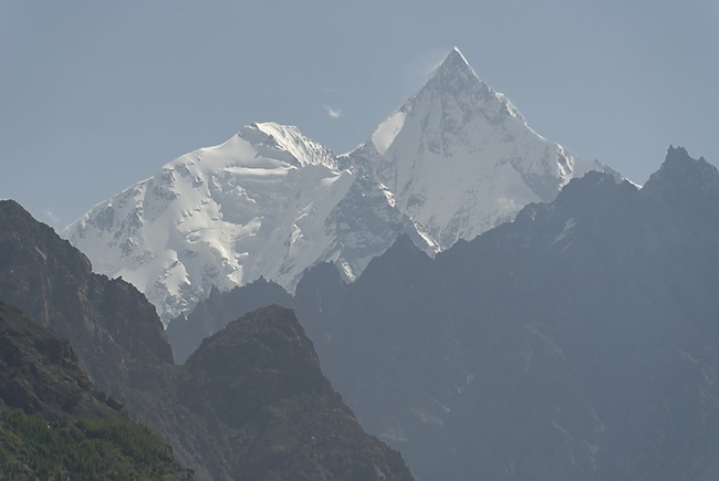 Der Dobani (6134 m) ist Gilgits Hausberg. Dobani (6134 m) the dominating peak above Gilgit. |